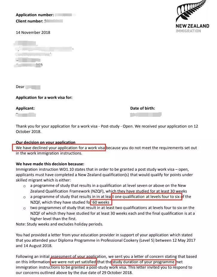 但是, 奥克兰西厨留学生陆先生的Open工签申请,却没有那么顺利——