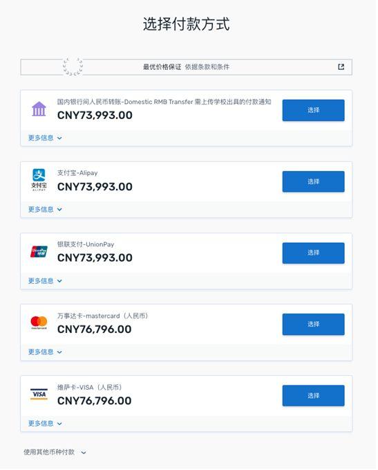 — 国内银行间转账:按照支付说明进行付款。根据您选择银行的不同,支付流程可能通过银行柜台、网银转账或手机银行来完成。(注意:这个方式需要上传学校的录取通知书或学费账单)