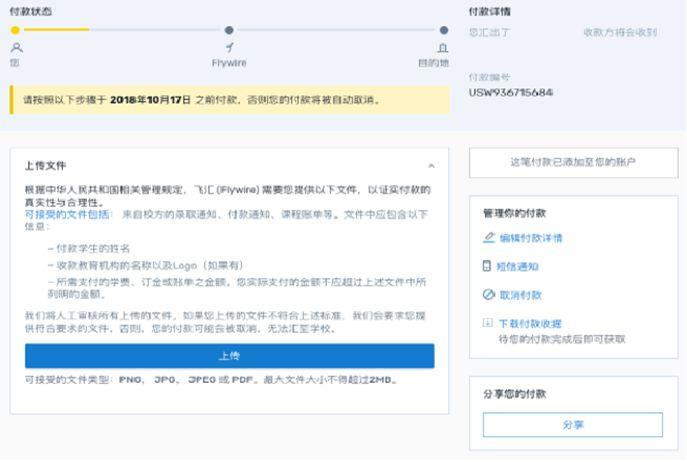 5、进行支付:根据飞汇提供的付款说明,以你选择的付款方式向飞汇(Flywire)支付款项。