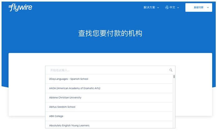 1、发起支付:在线访问www.flywire.com/zh 页面,点击右上角“发起付款”下拉菜单中的“支付”,进入付款页面。