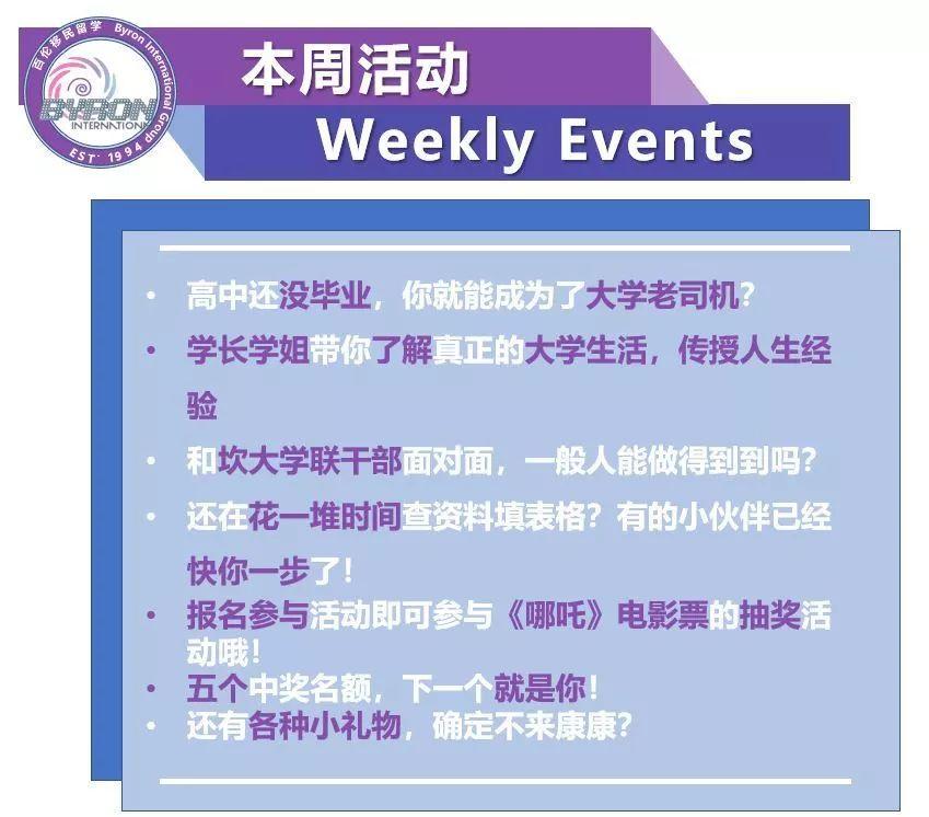 即日起报名参加我们周五举办的大学生活分享会,就有机会免费获得周六黄金时间段(1:00pm)的《哪吒》电影票哦!