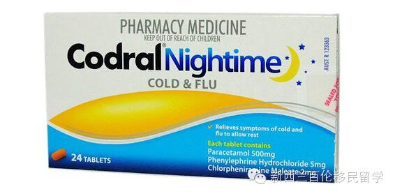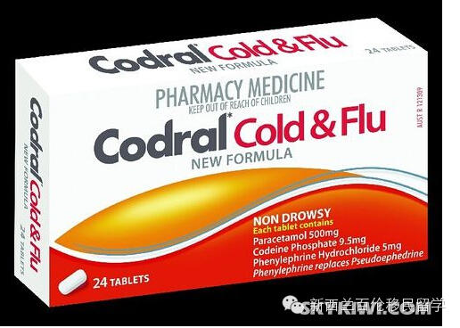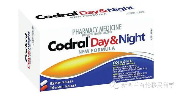 新西兰最畅销的感冒药品牌是codral cold & flu,一般都会放在最显眼的位置,它里面的成分有扑热息痛(paracetomol,这个词儿建议大家记住,后面会频繁出现),专门针对头疼脑热;Phenylephrine Hydrochloride(简称PE)专门针对鼻窦问题;以及Codeine Phosphate (针对身体乏力酸痛,但是这货吃多了会便秘以及困倦,量大的话需要处方,正常感冒药内含量不高,吃起来不会有太大副作用) 。