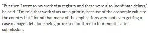 “移民局告诉我,工签是重中之重,因为关系到这个国家的经济,但是我发现很多工签申请人根本就没分到case manager,更别提三四个月就能批下来签证了。”
