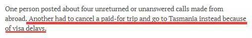还有人因为没有及时下签,不得不在住宿机票都订好了的情况下,临时把旅游目的地改成塔斯马尼亚……