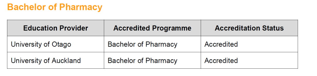 需要特别明确的,可以注册新西兰药剂师的学历仅限于以下两个本科学位。