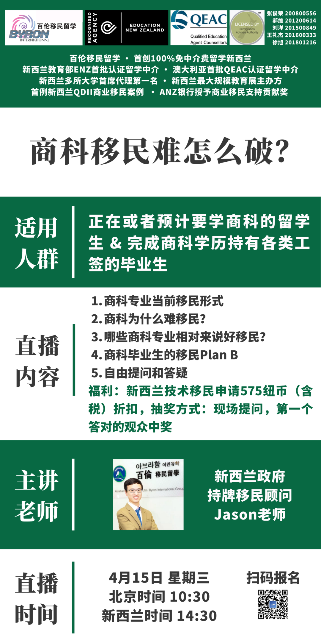 新西兰IAA持牌移民顾问,任职新西兰百伦移民留学。