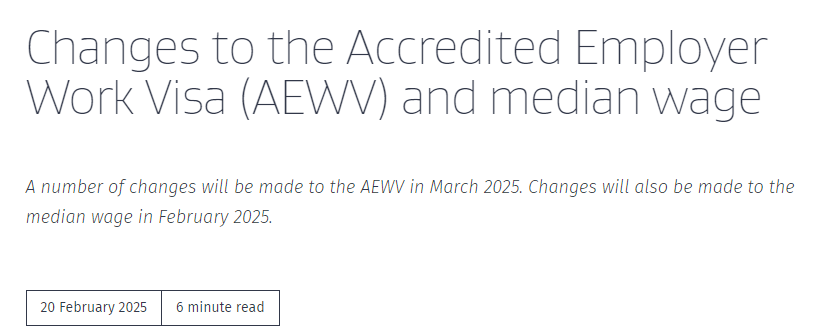 新西兰移民局(INZ)正式宣布,2025年3月起,AEWV(认证雇主工签)和SPWV(特殊目的工签)将迎来多项改革,降低雇主招聘门槛,提升政策灵活性,影响范围广泛!