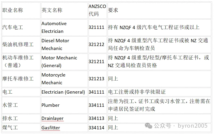 - 学历/注册要求:符合绿色清单指定的资格或新西兰行业注册认证