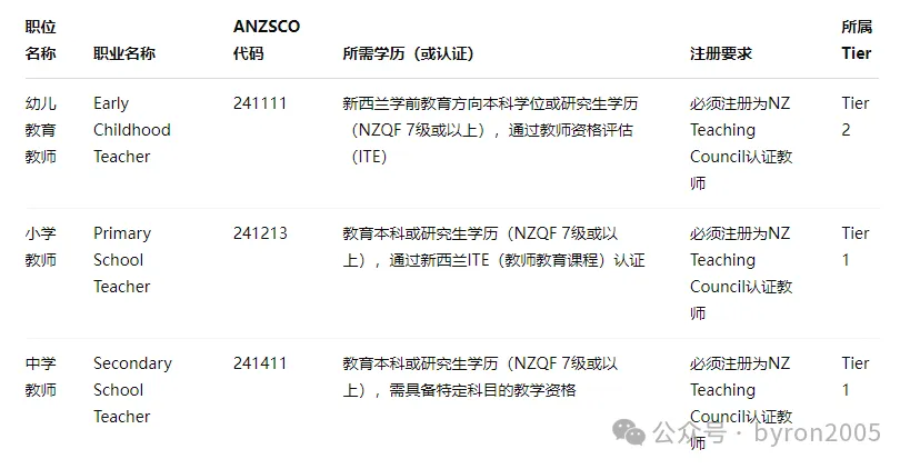 - 所有教师职业均需获得新西兰教师协会(Teaching Council of New Zealand)注册和认证。