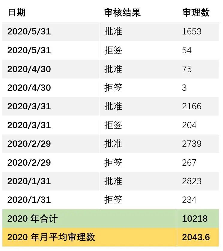 从上述数据可以看出,2020年至今,由于受到COVID-19疫情及封城影响,移民局申请处理能力较低(例如今年4月份仅处理了78份申请)。