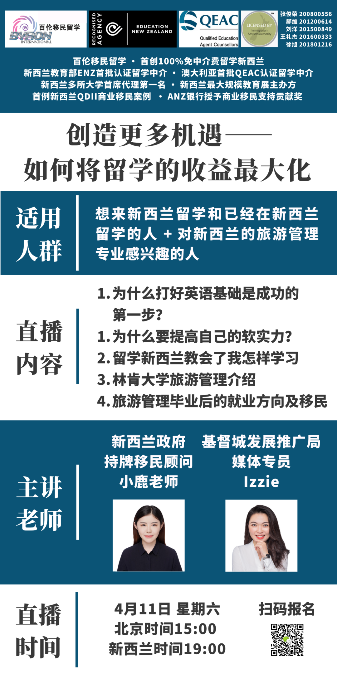 新西兰教育硕士毕业,擅长根据实际情况个性定制留学和签证方案,擅长各类教育专业比如新西兰幼教留学申请和各类疑难学签。个性随和,性格直爽,是留学移民新西兰居家必备之良品。