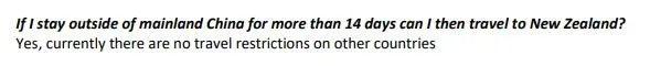 问:如果我在中国大陆以外的地方停留超过14天,可以去新西兰吗?