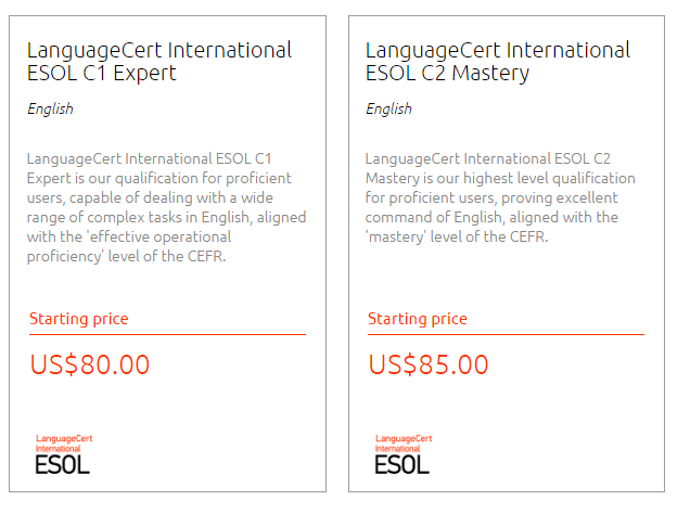 如果要进入到研究生阶段课程的学习,申请人需要参加LanguageCert – International ESOL–C1 Expert (LRWS)或LanguageCert – International ESOL–C2 Mastery的考试。