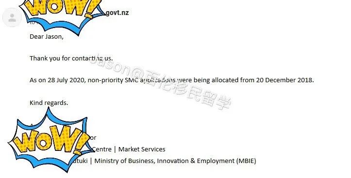 移民局的邮件显示,截止2020年7月28日,非加速类别的技术移民申请已审理到2018年12月20日接收的申请。收到邮件后,又有2019年1月10日接收的申请开始审理。