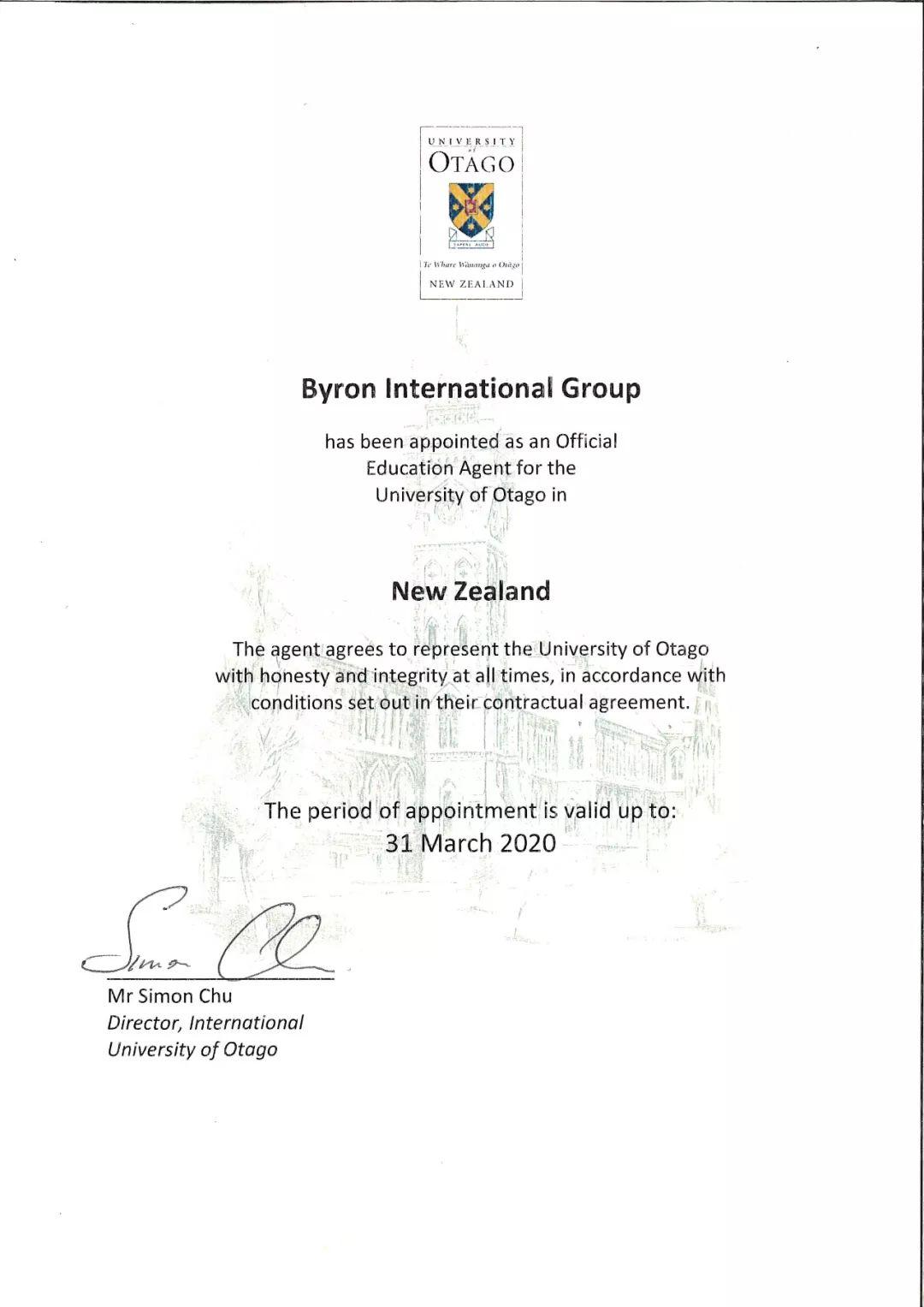 下面给大家秀一下新西兰八大公立大学给百伦的授权证