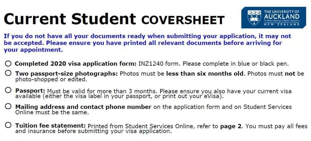 通过学校递交学生签证叫做Provider Direct Student Visa,是校方经过移民局授权的递交通道,在审理上将会比一般的学生签证审理快很多。学校通常会给学生详细的申请材料清单,且有专门的老师负责指导学生的材料准备并审核申请材料(以奥克兰大学为例,如下图所示)。