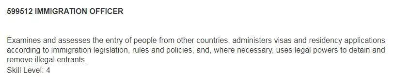 移民官的职业技能在ANZSCO澳新职业大典中的技能等级为4级(Skill level 4)(如下图所示),且新西兰现在有大量的新人移民官,移民官在一些专业技能资格水平的评估上能力是有限的。