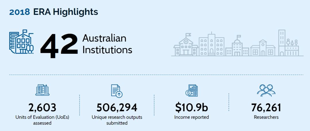 澳大利亚卓越研究报告 (ERA) 由澳大利亚研究委员会 (ARC) 发布。ARC是一个联邦机构,在澳大利亚研究领域扮演着举足轻重的角色,其研究对于促进国际范围内的研究和改革、促进社会进步具有重要意义。ERA报告从22个广泛研究领域和93个专项研究领域,评估了42所澳大利亚高等院校的科研实力。