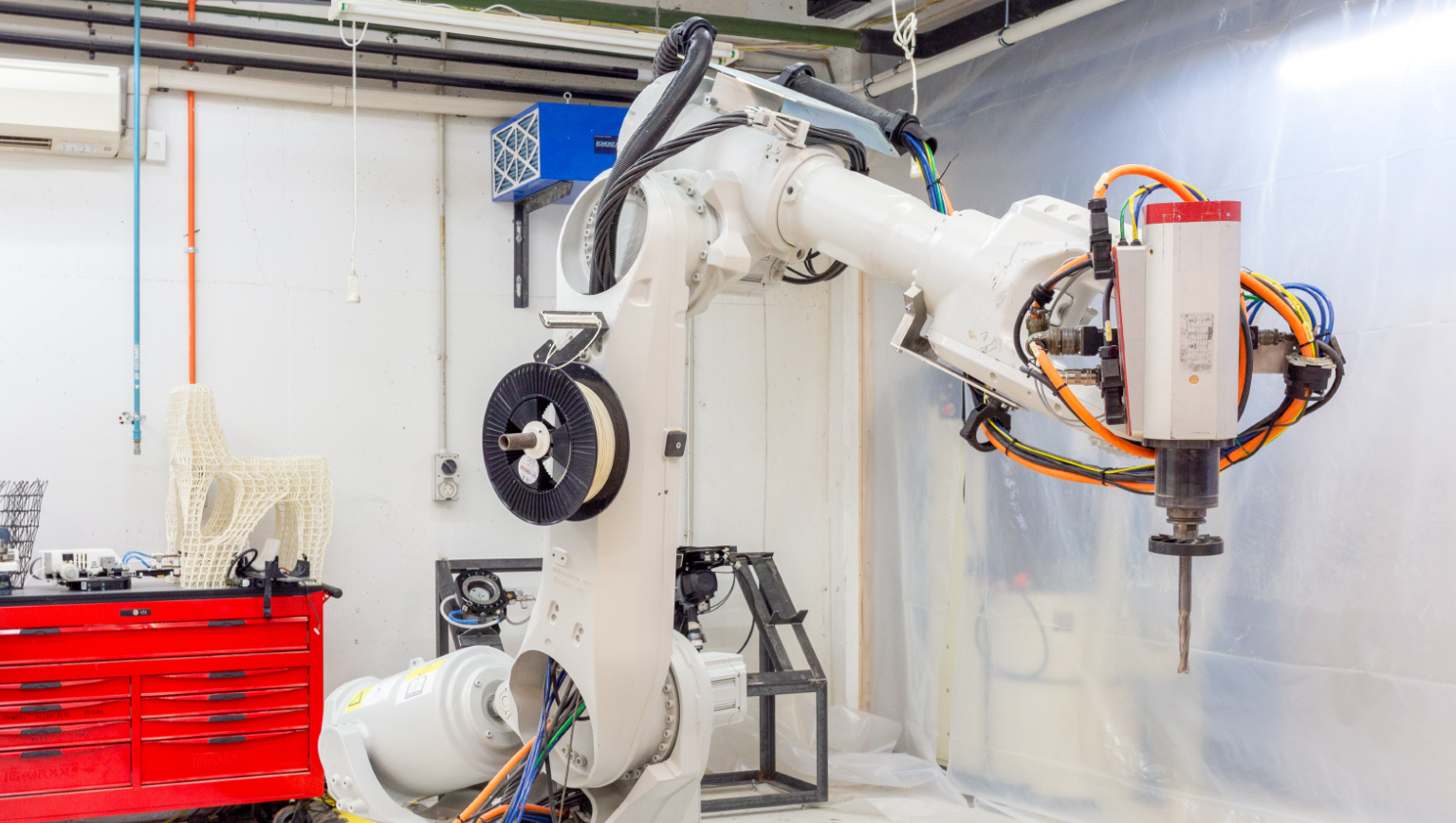 - ABB六轴机器人臂:支持3D打印、雕刻、抓取、多材料实验(黏土、混凝土、PLA等)