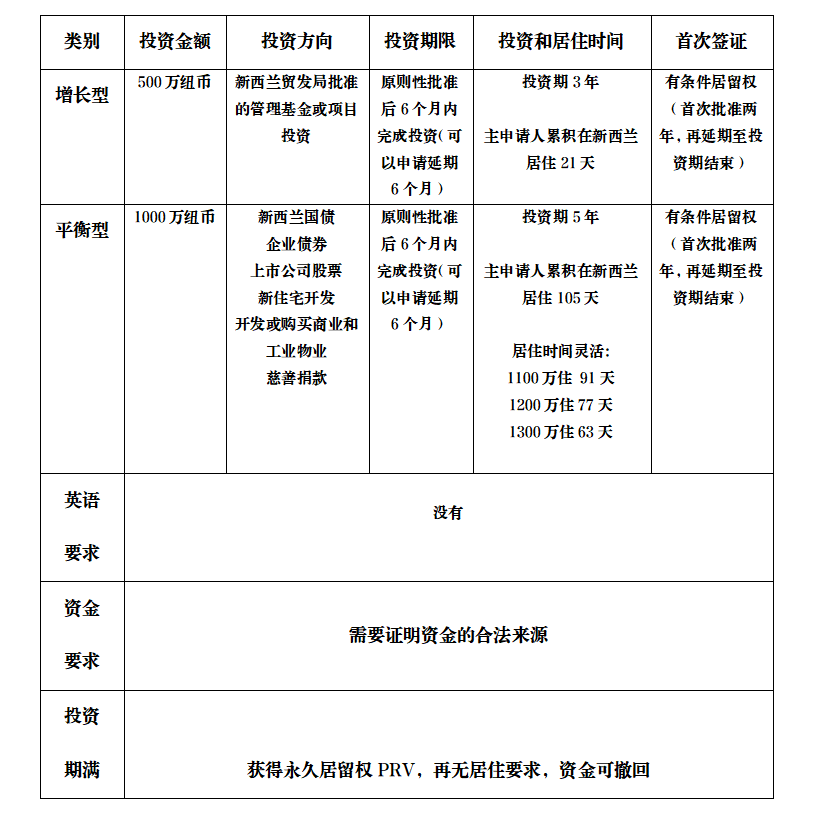 投资额:500万新西兰元投资,直投生意或基金,投资3年。