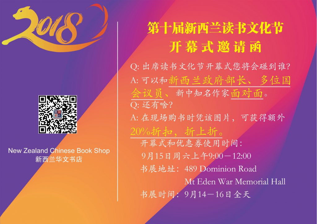 新西兰读书文化节开幕式8折优惠券