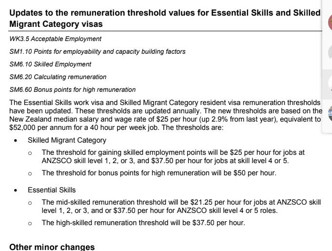 1 技术移民最低工资要求由现在的24.29纽币上涨至25纽币/小时,(技能级别1,2,3级职位)