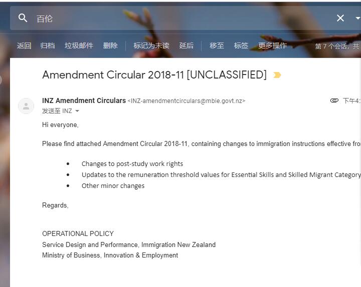 周五(2018年11月9日)临下班,新西兰百伦留学移民的公司邮箱收到新西兰移民局邮件 移民局又作妖了…