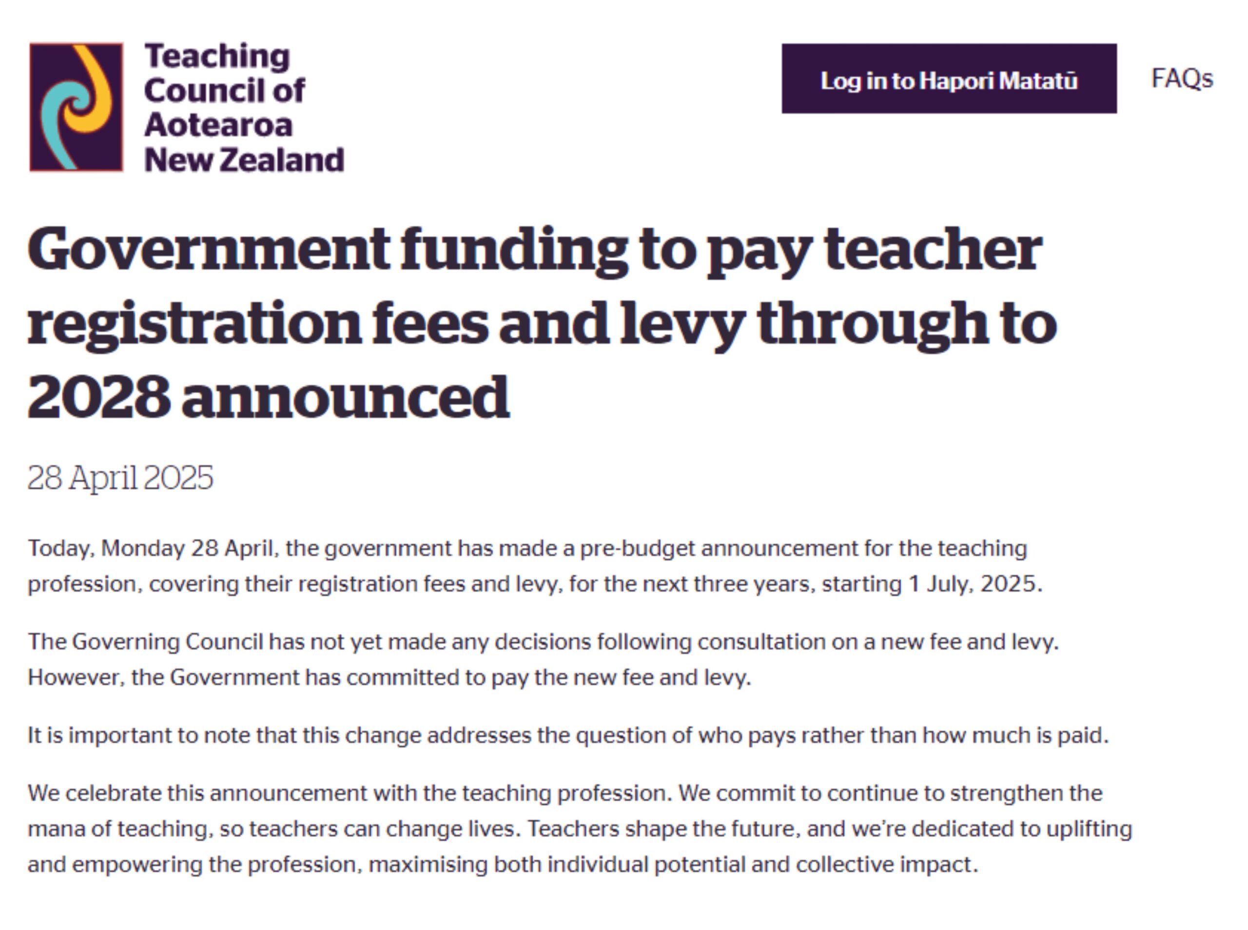 2025年4月28日星期一,政府发布了针对教师行业的预算前公告,宣布将在未来三年内(自2025年7月1日起)支付教师的注册费用和征费。